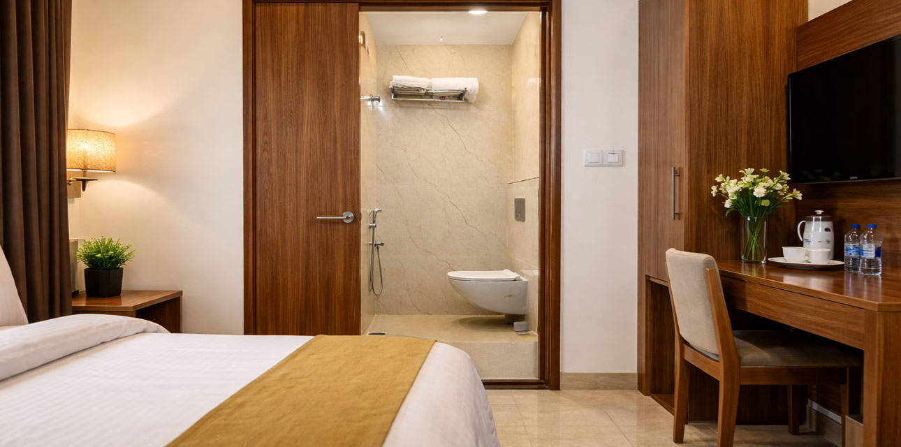 The Suite at Hotel MS Chola is designed to offer a premium and spacious stay experience with elegant interiors and modern amenities.